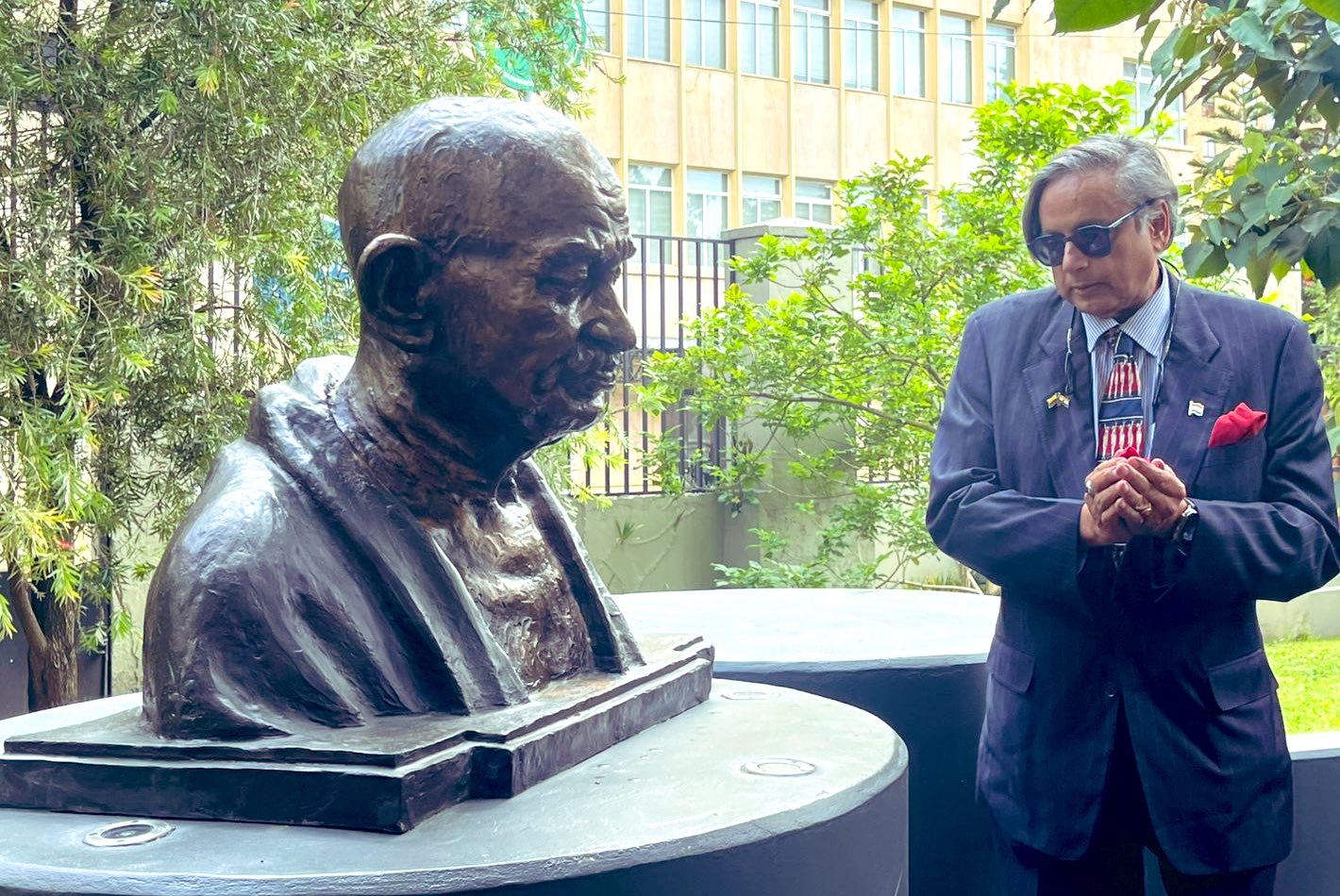 Senior Indian parliamentarian, author, and former UN diplomat Dr. Shashi Tharoor paid floral tribute at the bust of Mahatma Gandhi at Tadeo University. He called it a poignant reminder of the enduring power of peace and non-violence.