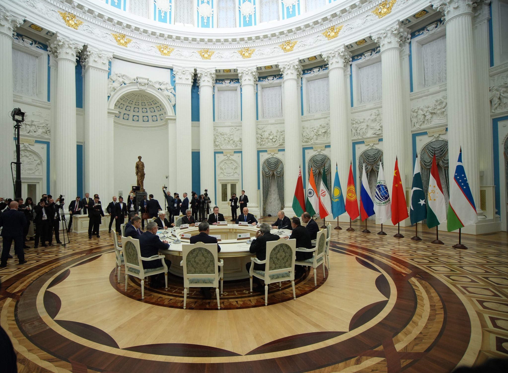| Russian President Putin along with Heads of SCO Delegations. Image Via: Indian EAM Jaishankar |